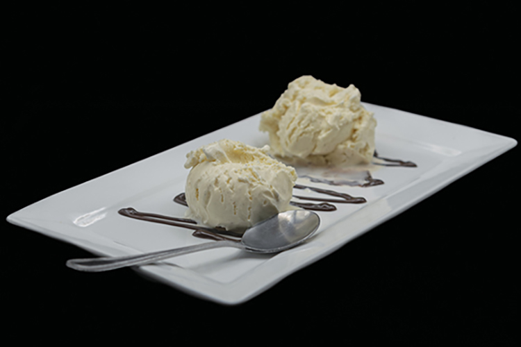 Two scoops of smooth and creamy vanilla bean ice cream, perfect on its own or as the sweet finish to any meal.