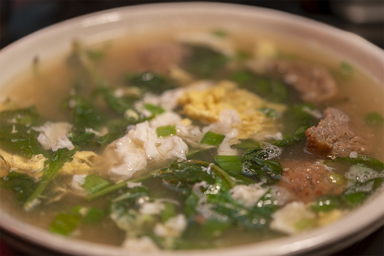 Chicken broth with Italian meatballs, Spinach, Egg, and Parmesan cheese.
